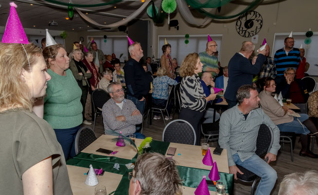 Het weekend werd afgetrapt met een speciale avond voor de trouwe vrienden van het dorpshuis, georganiseerd door de feestcommissie. Deze avond was gevuld met eigen artiesten, namelijk de verenigingen die in Ons Dorpshuis repeteren. En dat ze goed oefenen is te horen, wat een geluid!
